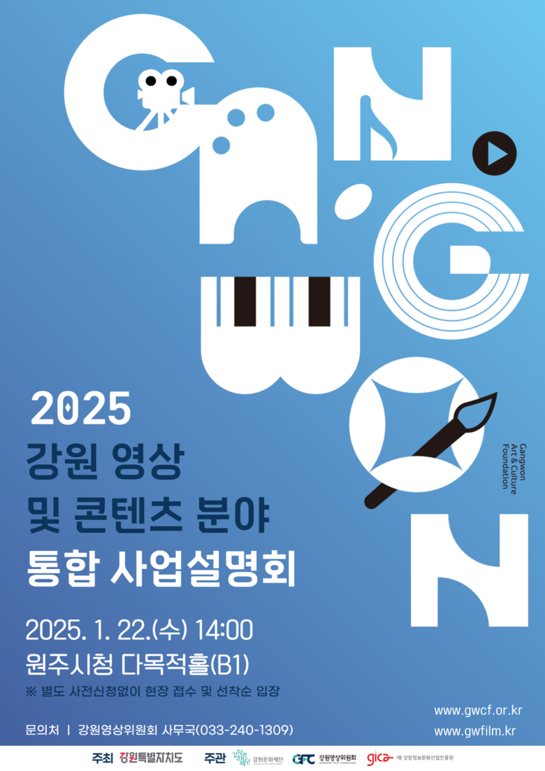 이번 통합 사업설명회는 강원 영상산업 및 콘텐츠산업 활성화를 목적으로, 강원영상위원회와 강원정보문화산업진흥원이 협력하여 공동으로 개최한다. 행사에서는 도내 영상산업 및 콘텐츠산업 관련 단체와 창작자를 대상으로 양 기관의 소개, 2025년 추진사업 안내, 사업 담당자 질의응답, 찾아가는 저작권 상담 등이 진행될 예정이다.