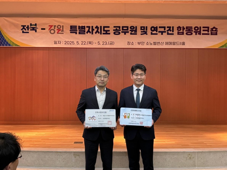 [강원도 세계타임즈=김민석 기자] 강원특별자치도(도지사 김진태)는 전라북도와의 상생협력 강화를 위해 「강원-전북 특별자치도 공무원 및 양도 연구원 합동 워크숍」을 5월 22일부터 23일까지 양일간 전북 부안 소노벨 변산에서 개최했다고 밝혔다.