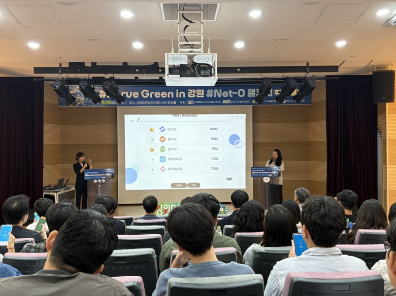 [강원도 세계타임즈=김민석 기자] 강원특별자치도·삼척·원주·춘천 탄소중립 지원센터(센터장 김진영·김주영·전용한·임성린)는 19일(금), 강원대 정강홀에서 도내 공무원 100여 명을 대상으로 탄소중립 퀴즈대회 「#Serve Green in 강원 #Net-0 챌린지」를 개최했다고 밝혔다.