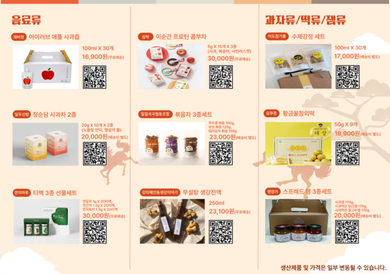 제품의 세부 정보와 구매처는 2월 2일부터 2월 18일까지 경상북도농업기술원 홈페이지 내‘지역특화 가공제품’페이지에서 확인할 수 있으며, QR코드를 스캔하면 판매처로 바로 연결돼 편리하게 구매할 수 있다.