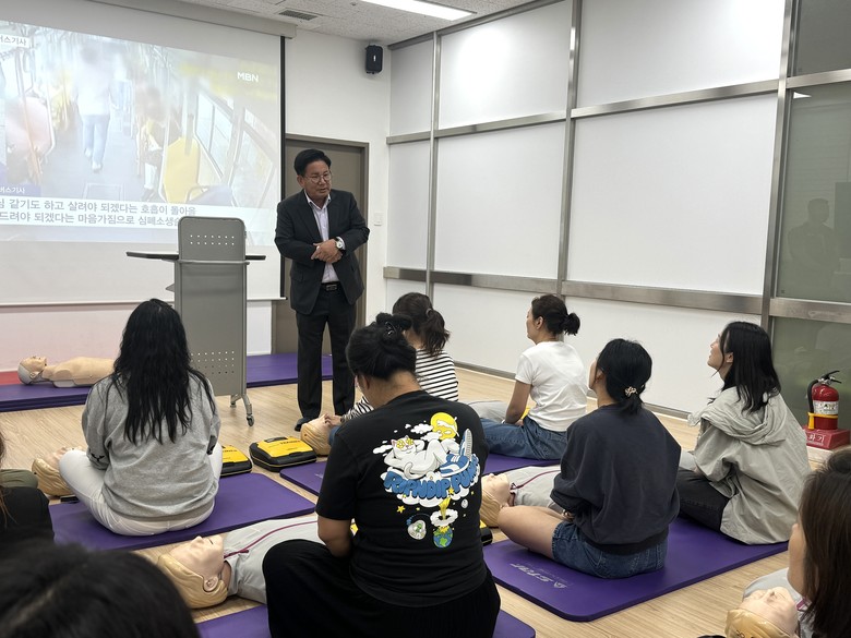 교육 참여자들은 심폐소생술과 자동심장충격기 사용법에 대한 이론을 익힌 후 교육용 인형을 이용해 실습을 병행한다.