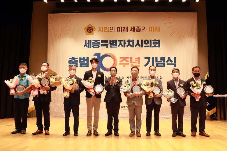 이어진 유공자 포상에서는 의회 발전에 기여한 지역 주민들 및 역대 시의원, 지역 언론인에게 감사패와 세종시의회 사무처 공무원에게 표창장 수여가 이뤄졌다.