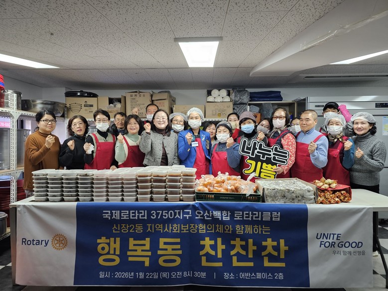 [오산시 세계타임즈=송민수 기자] 오산시 신장2동 행정복지센터(동장 이은영)는 지난 22일 신장2동 지역사회보장협의체(민간위원장 전순선)와 오산백합로타리클럽(회장 곽미정)과 함께 2026년 첫 ‘행복동 찬찬찬’사업을 실시했다고 밝혔다.