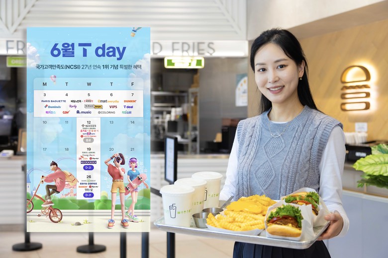 6월 T day에는 ▲쉐이크쉑 전제품 30% 할인 ▲파리바게뜨 1,000원 당 500원 할인 ▲도미노피자 방문포장 50% 할인 ▲피자헛 방문포장 50% 할인 ▲던킨 40% 할인 ▲이디야 아메리카노 50% 할인 등의 파격적인 혜택*을 제공한다. SK스토아 3만원 이상 주문 시 30% 할인 혜택도 새롭게 추가되었다.