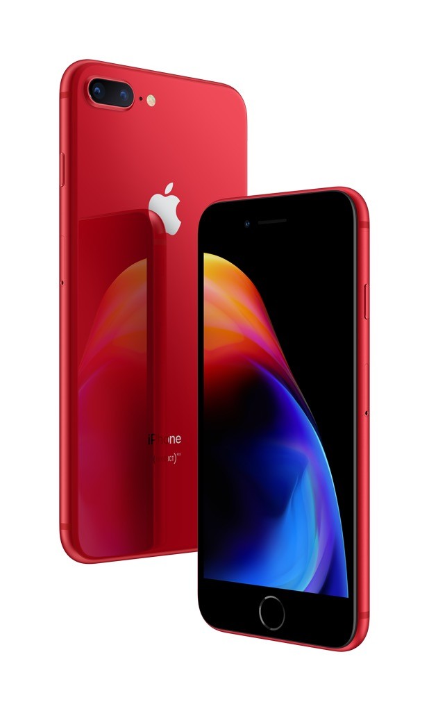 iPhone 8 과 iPhone 8 Plus는 유리소재 마감과 알루미늄 밴드 디자인이 조화를 이룬다. 또 무선 충전 기능과 1,200만 화소 듀얼 카메라는 다양한 조명을 활용하는 인물 사진 모드로 인기를 끌고 있다. 빨간 색상의 아이폰은 작년 3월 출시된 Special Edition과 마찬가지로 수익의 일정 금액이 에이즈 없는(AIDS-Free) 사회를 만드는데 기여하는 글로벌 펀드에 기부된다.