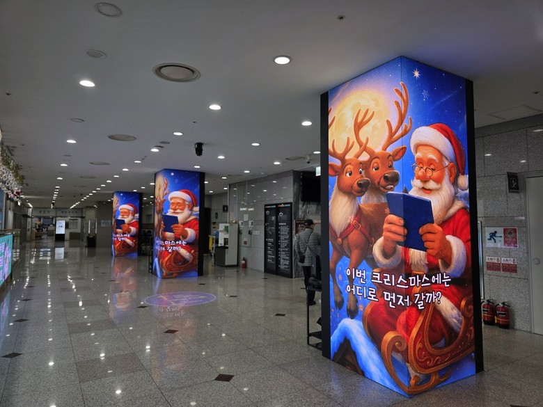 또한 청사 로비 기둥에 추가 설치된 미디어보드에서는 입체감 있는 영상이 송출 가능해져, 동화 같은 크리스마스 분위기의 입체 영상이 상영돼 방문객들을 맞이한다. 연말연시를 맞아 특별 송출되는 영상은 입체 영상에 그치지 않는다. 청강문화산업대학교와 협력하여 학생들이 직접 제작한 애니메이션 작품을 ▲치유 & 일상 ▲액션 & 판타지 ▲졸업작품 각 3개의 주제로 10편씩, 총 30개의 영상이 송출된다.