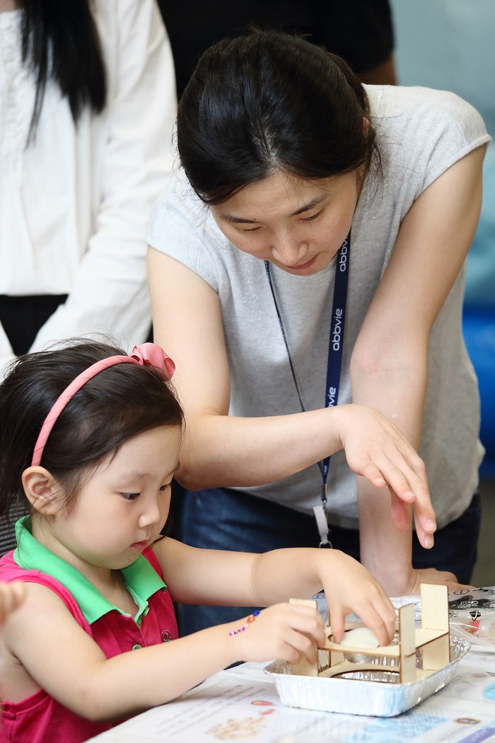 더불어 매월 둘째 주 금요일을 ‘애브비 패밀리데이’로 지정, 정규 근로시간을 3시간 앞당겨 오후 3시 퇴근을 독려해 가족들과 더 많은 시간을 보낼 수 있도록 배려하고 있다. 방학을 맞은 임직원 자녀들을 회사로 초청해 가족과 함께 과학 원리를 배우는 ‘패밀리 사이언스 데이’와 연말 자녀들과 함께 요리하는 ‘패밀리 쿠킹 클래스’ 등은 아이들과 보내는 시간이 적은 애브비의 일하는 엄마·아빠들을 위한 프로그램들이다. 이러한 다양한 가족친화 제도 운영은 여성 인력 비율에도 영향을 미쳐서 한국애브비의 임원 중 여성 비율은 46%, 직원 중 여성 비율은 43%에 달한다.