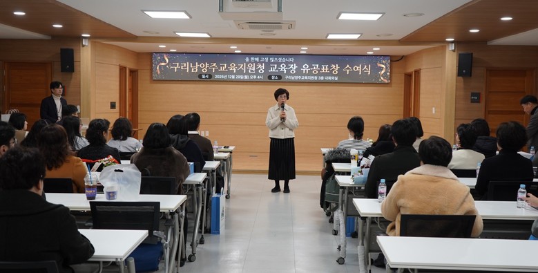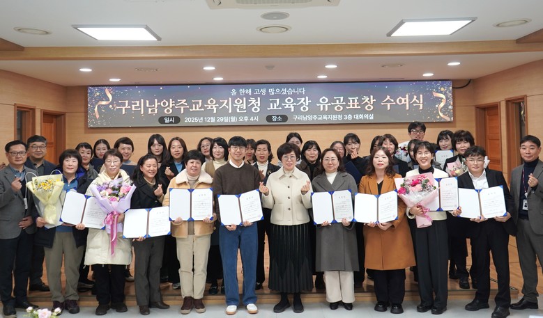 [남양주시 세계타임즈=송민수 기자] 경기도구리남양주교육지원청(교육장 서은경)은 12월 29일, 교육 현장 최일선에서 헌신해 온 지방공무원과 교육공무직원을 대상으로 ‘2025년 구리남양주 교육장 표창 수여식’을 진행하였다. 이번 수여식은 평소 구리남양주 교육 발전을 위해 각자의 위치에서 묵묵히 직무를 성실히 수행해 온 지방공무원과 교육공무직원의 공로를 기리고, 그간의 노고를 격려하기 위해 마련되었다.