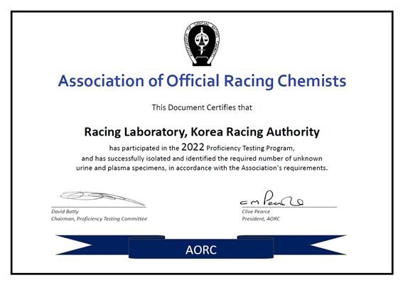국제숙련도시험은 경주마 도핑검사기관의 금지약물 분석능력을 검증하는 무대일 뿐만 아니라 나날이 발전하는 불법도핑 기술을 따라잡기 위한 노력의 일환이다. AORC는 불법 도핑기법의 진화에 비례해 점점 높은 난도의 테스트를 매년 시행하고 있다. 1976년부터 경주마 도핑검사를 시작한 한국마사회 도핑검사소는 1997년부터 이 시험에 참가해 올해까지 26년 연속 100%적중률로 합격을 이어왔다.