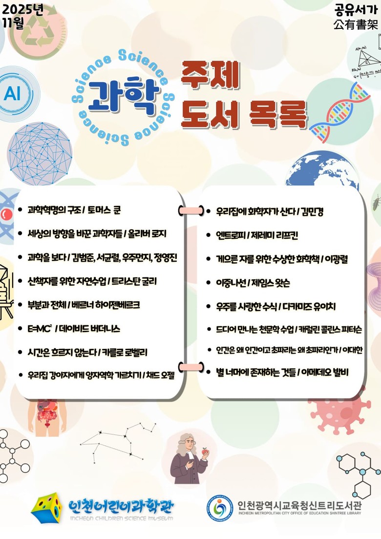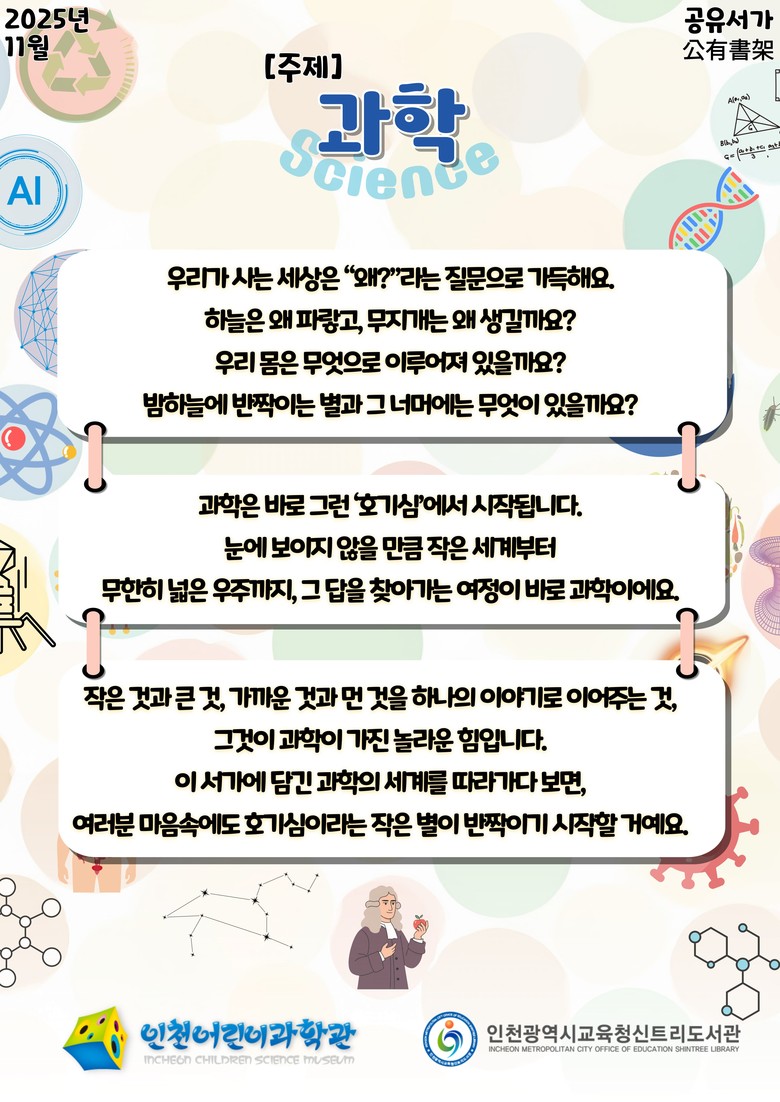 신트리도서관 관계자는 “이번 공유서가가 시민들의 과학적 호기심을 자극하는 계기가 되길 바라며, 앞으로도 인천어린이과학관과 협력해 다양한 과학문화 프로그램을 운영하겠다”고 말했다.