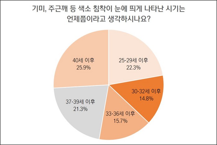 -기미 등 색소침착이 눈에 띄는 시기는 20대부터 50대까지 고른 응답 반응 보여