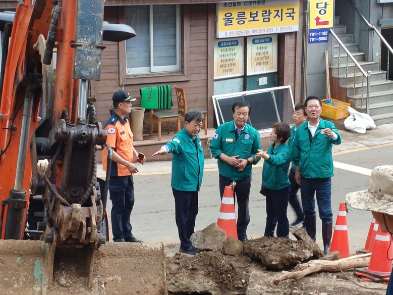 울릉군에 따르면 지난 11~12일 이틀간 시간당 70mm의 폭우가 내렸고 누적 강수량은 308.7mm에 달해 지역 곳곳에 피해를 끼쳤다.