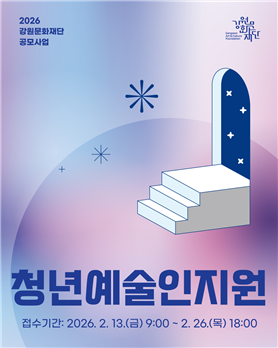 신청은 13일(금) 9시부터 26일(목) 18시까지 국가문화예술지원시스템(NCAS)을 통해 가능하며, 최종 선정 결과는 3월 중 강원문화재단 홈페이지를 통해 발표할 예정이다.