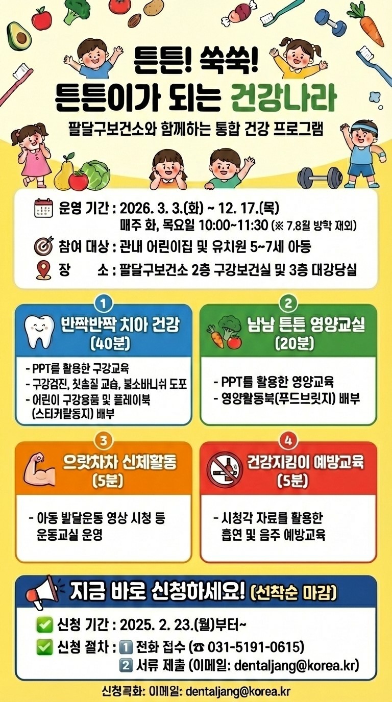 평생 건강의 기초가 되는 유아기에 구강 관리, 영양, 신체활동, 흡연·음주 예방 등 다양한 교육을 제공해 아동들의 원활한 성장 발달을 돕는 프로그램이다.
