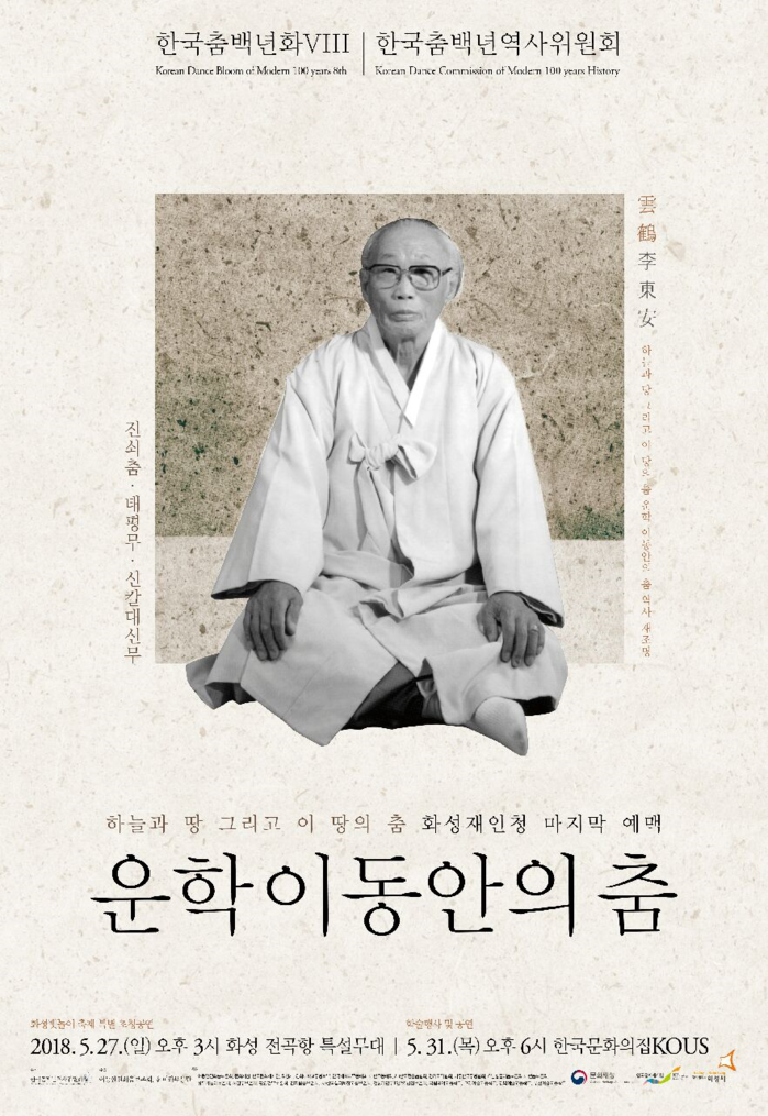 [세계타임즈 이연종 기자]비영리 예술단체 ‘한국춤백년역사위원회’(위원장 민향숙)는 오는 5월 27일과 5월 31일 양일간에 걸쳐 화성재인청류 춤의 전통성과 예술성을 온존히 보존하고 있는 ‘화성재인청 운학 이동안의 춤’을 조명하는 행사를 개최한다. 행사 주관은 ‘이동안진쇠춤보존회’(회장 윤미라)와 ‘윤미라무용단’이 맡는다.