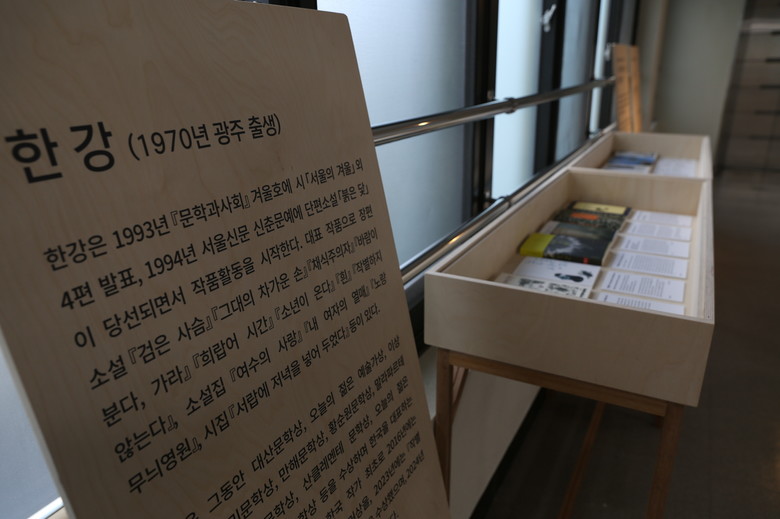 책과 함께 설명자료와 한강 작가 관련 스크랩북도 전시돼 관람객의 이해를 높였다. 도서는 전시 기간 중 4층 도서자료실에서 읽을 수 있다.