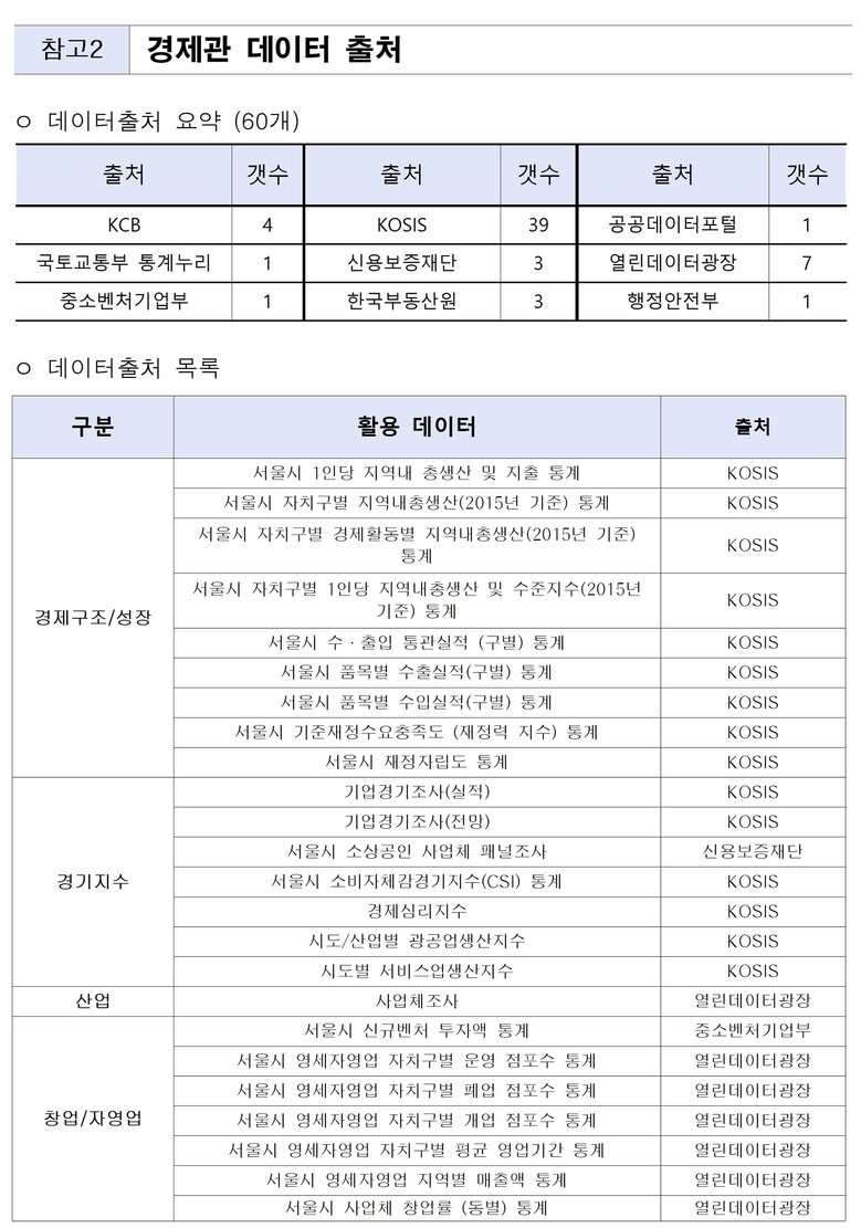 아울러 서울시 정책 기획과 지역 경제 진단.정책 성과 점검에 활용, 정책 판단의 근거를 보다 명확하게 제시하고 수립해 나갈 수 있는 기반이 될 것으로 보고 있다.