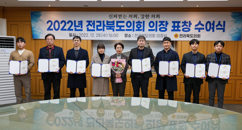 [전북세계타임즈 = 전영숙 기자] 전라북도의회는 지난28일 의장실에서 의정 발전 및 지역사회 발전에 공헌한 유공자 26명에게 표창을 수여했다.