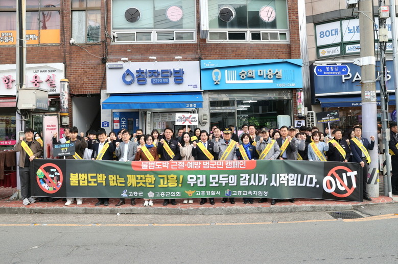 참여자들은 ‘불법도박 없는 깨끗한 고흥! 우리 모두의 감시가 시작입니다’라는 슬로건 아래 어깨띠와 피켓을 활용해 도박 근절에 대한 군민들의 적극적인 참여를 독려했다.