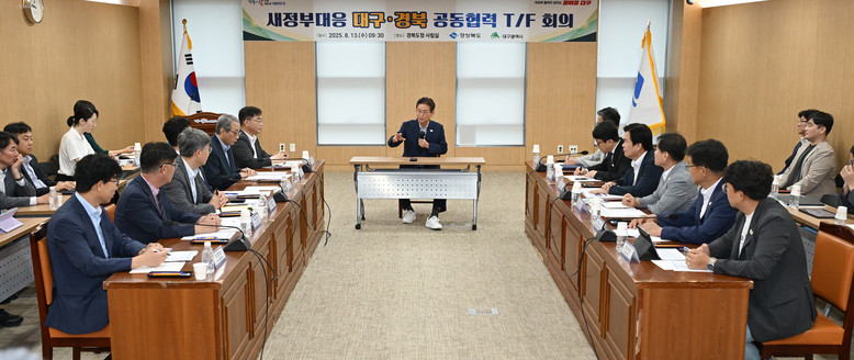 ‘대구·경북 공동협력 T/F’는 두 지역의 공동 현안을 체계적으로 논의하고 전략적 대응 방안을 마련하기 위해 구성된 행정 협력기구로서, 김호진 경상북도 기획조정실장과 오준혁 대구시 기획조정실장이 공동단장을 맡았다.