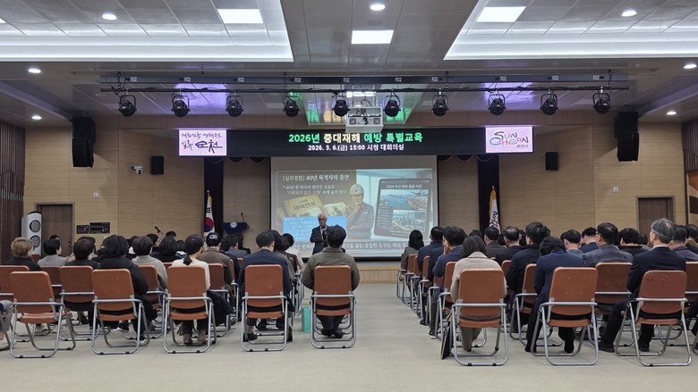 한편, 순천시는 지난 2월 「2026년 중대재해 예방 종합계획」을 수립해 전 부서와 읍‧면‧동에 시달했으며, 시 산하 사업장 현장 점검을 강화하고 위험성 평가를 통해 유해‧위험 요인을 선제적 예방함으로써 중대재해 제로화를 통해 안전한 도시 조성에 최선을 다할 계획이다.