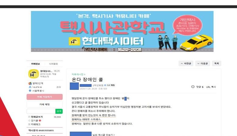 - 120다산콜재단 피해 접수민원, 택시기사 커뮤니티 등 ‘장애인 xx콜 취소하니 신고했다. 장애인 태우면 피곤해...인식개선 언제쯤?’