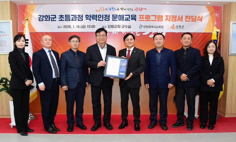 강화군은 16일 인천광역시교육청과 문해교육 프로그램 운영기관 지정서 전달식을 개최하고, ‘강화 행복학교’ 운영의 본격적인 시작을 알렸다.