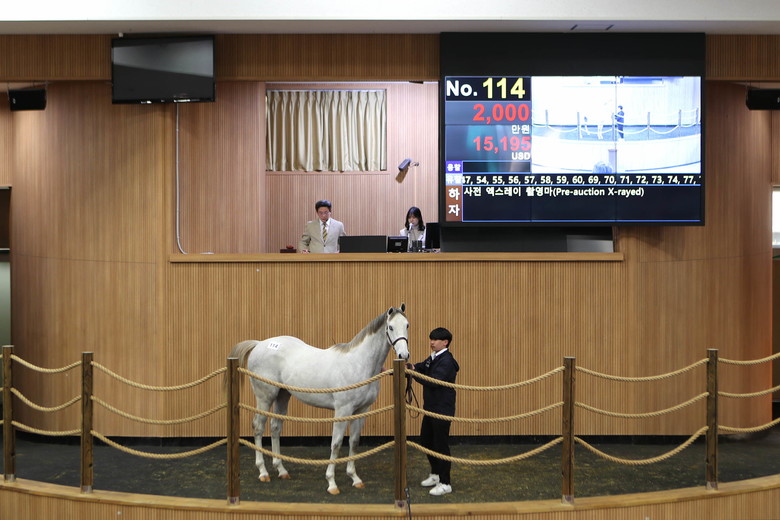 이날 총 낙찰 금액은 28억 98백만 원이었는데, 작년 3월 보다는 상장두수가 살짝 감소하면서 소폭 감소한 수치였다. 평균 낙찰가는 3700만 원에 달했으며, 최고가를 올린 말은 부마 ‘언캡처드’와 모마 ‘인디언스타’ 사이에서 태어난 수말로, 1억 3천만 원에 낙찰됐다. ‘언캡처드’와 ‘인디언스타’ 모두 미국에서 20세기 최고의 씨수말로 평가받는 명마 ‘스톰캣’의 후손이다.