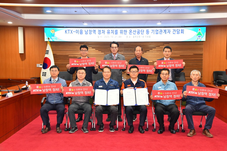 이순걸 울주군수는 “울산 울주군은 대한민국 산업의 심장부이자, 미래성장 거점인 만큼 남창역 정차는 단순한 교통 편익을 넘어 우리나라 산업 경쟁력의 핵심”이라며 “지역주민, 기업과 함께 남창역 정차 실현을 위해 끝까지 노력하겠다”고 말했다.