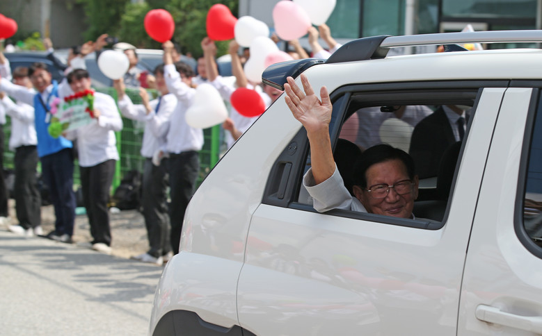 [전북=세계타임즈 이영임 기자] 8일 오전 신천지예수교 증거장막성전 맛디아지파 청주교회로 입장하는 이만희 총회장을 성도들이 환영하고 있다.