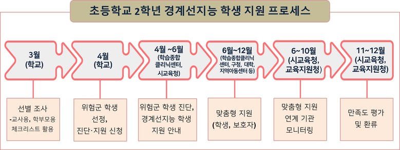 주요 추진 내용으로 초등학교 2학년 학생을 대상으로 간편 체크리스트를 활용한 선별 조사를 실시하며, 위험군으로 판단된 학생은 학부모 동의를 거쳐 교육지원청 학습종합클리닉센터의 심층진단으로 연계한다. 경계선지능으로 진단된 학생에게는 학습종합클리닉센터와 지역 전문기관, 자치구, 한국교원대학교 등과 협력하여 학습·심리·정서를 아우르는 맞춤형 프로그램을 제공한다.