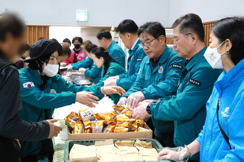 이후 청송국민체육센터로 이동한 방문단은 현장에서 활동 중인 청송군 자원봉사자들과 함께 피해 주민 및 복구 인력을 위한 배식 봉사활동에 참여했다. 단양군의회 의원들은 직접 식사를 나누며 피해 주민들과 일일이 인사를 나누고, 위로와 격려의 메시지를 전했다.