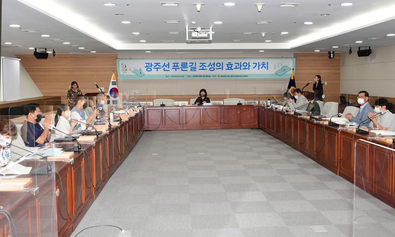 시의회와 광주선푸른길더하기시민회의가 공동으로 주최한 이날 토론회는 이경희 사무처장(광주환경운동연합)과 유창호 박사(전남대학교 지역개발연구소)가 공동 발제를 하고, 박수기 광주광역시의원, 김명수 전남대학교 사회학과 교수, 박홍근 포유건축사사무소 대표, 민현정 광주전남연구원 공동체연구실장이 토론에 참여했다.