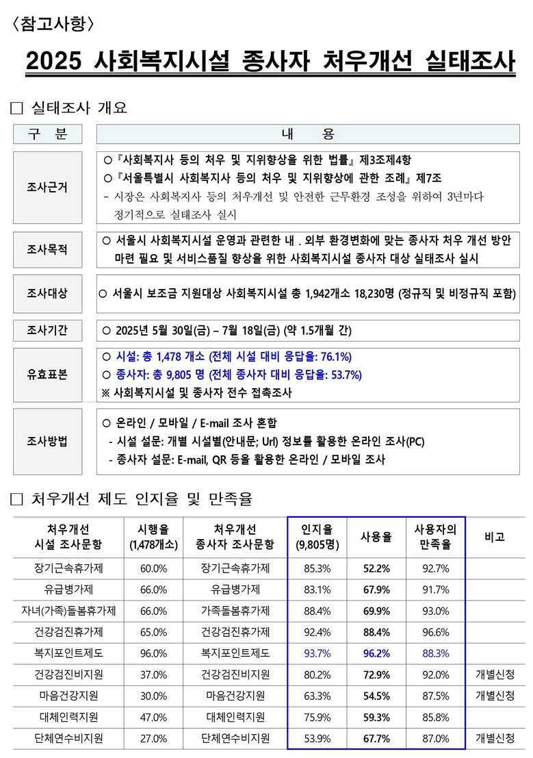 <‘사회복지시설 종사자 실태조사’서 64%가 ‘긍정적’… 현장 목소리 지속 수렴해 나갈 것>