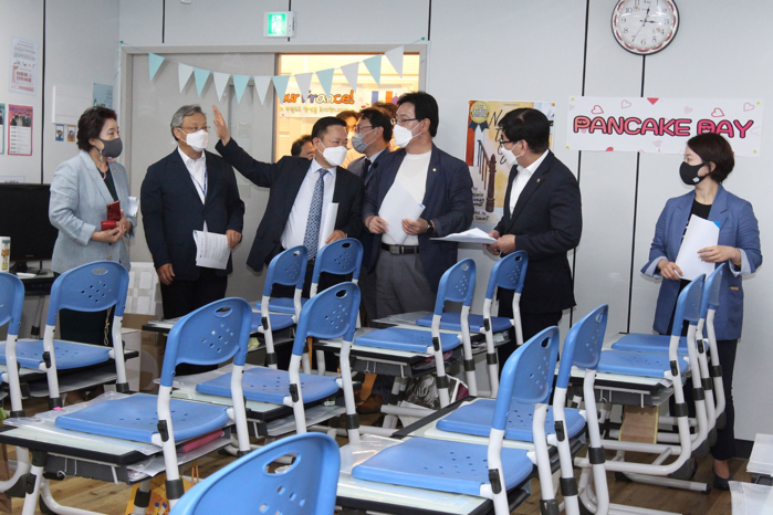 [부산=세계타임즈 장경환 기자] 부산시의회 교육위원회가 학생과밀 문제 해소를 위한 방안 모색에 나섰다. 이순영 위원장 등 교육위원회 의원은 지난 26일(수) 명지국제신도시 내 명원초등학교 등 3곳의 학교현장을 방문, 모듈러교실 설치현황을 살피고 설치를 준비하고 있는 학교의 추진계획 등을 청취했다.