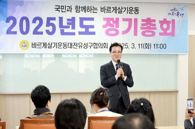 [대전 세계타임즈=이채봉 기자] 대전시의회 조원휘 의장은 11일 바르게살기운동 대전시유성구협의회에서 개최된 2025년 정기총회에 참석해 바르게살기운동 정신 실천에 앞장서며 지역사회에 헌신해 온 유성구협의회 회원들에게 감사를 표했다.