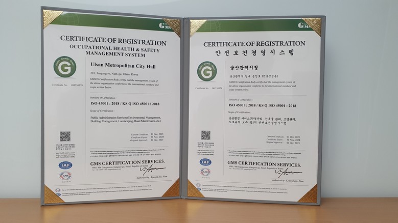 이번 국제인증 획득으로 울산시는 종사자의 안전과 건강을 지키기 위한 경영책임자의 확고한 의지를 대내외에 확인시켰다.