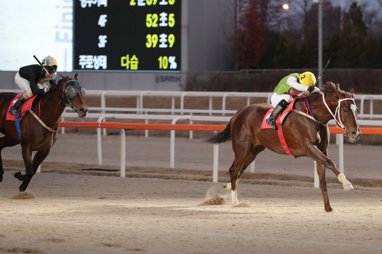 ‘심장의고동’은 최고의 국산 경주마를 선발하는 대통령배(G1)의 2021년 우승마다. 서울에서 활동 중인 1600여 마리 경주마 중 세 번째로 높은 레이팅(경주마 능력 평가 등급)을 지닌 ‘심장의고동’은 국산 스타 경주마 ‘지금이순간’의 자마로도 유명하다. 부전자전의 경주능력을 선보이며 국산 경주마의 경쟁력을 입증해온 ‘심장의고동’이 해외무대에서도 활약을 이어갈지 국내 경마팬들과 관계자들의 기대가 상당하다.