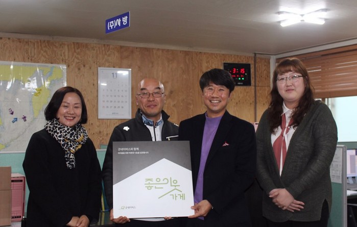[강원도=세계타임즈 김민석 기자] 27일(화), 굿네이버스 강원동남지부(지부장 임진묵)는 삼척시에 위치한 요식업체 덕성농장닭집 (대표 권미란)과 동해시 대케, 킹크랩 수입유통 전문 업체인 ㈜사방(대표 김민철), 늘푸른 초록봉주유소(대표 임응택)에 ‘좋은이웃가게’현판을 전달했다.