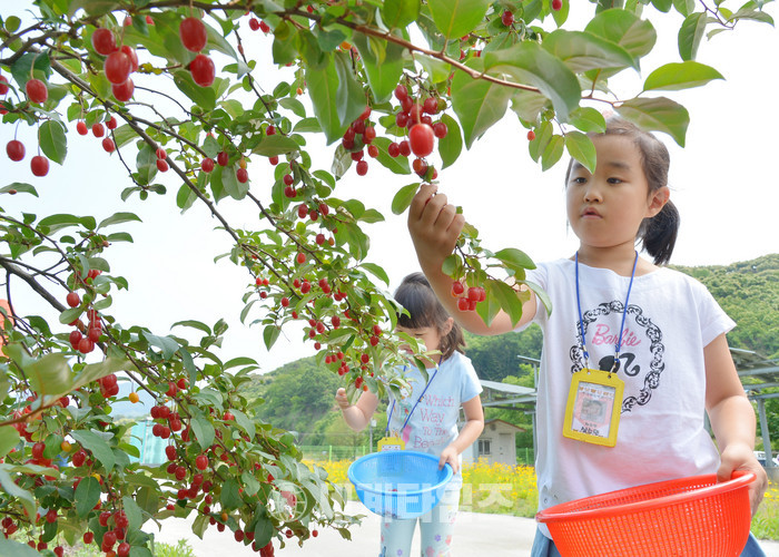 충주시 소태면이 13일 하청마을 오량천변에서 보리수길 걷기 및 보리수 열매따기 체험행사를 열었다.