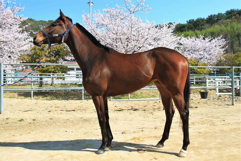 전년도 씨수마 순위 5위에 랭크되며 신예 씨수마로서 이름을 떨치고 있는 ‘머스킷맨’의 자마다. 초반 빠른 스피드로 선두를 차지하고 끌어나가는 선행마다. 그 탓에 지난 루나Stakes에서는 비슷한 주행습성을 가진 ‘라온더스퍼트’와의 선두다툼에 체력을 소진하고 막판 ‘골든파워’에 추월당하며 우승을 놓쳤다. 하지만 가장 바깥쪽인 14번 게이트에서 출발했고 마지막까지 탄력적인 걸음을 유지했음을 고려하면 이번 코리안오크스 우승 가능성은 상당하다. 아직 1800m 경험은 없지만 지난 3월 1700m 경주에 출전해 여유로운 1위를 차지함으로써 중장거리 가능성을 보여주기도 했다. 이번에야말로 작년 7월 데뷔한 이준철 조교사에게 대상경주 첫 우승을 안겨줄 수 있을지 관심이 모인다.
