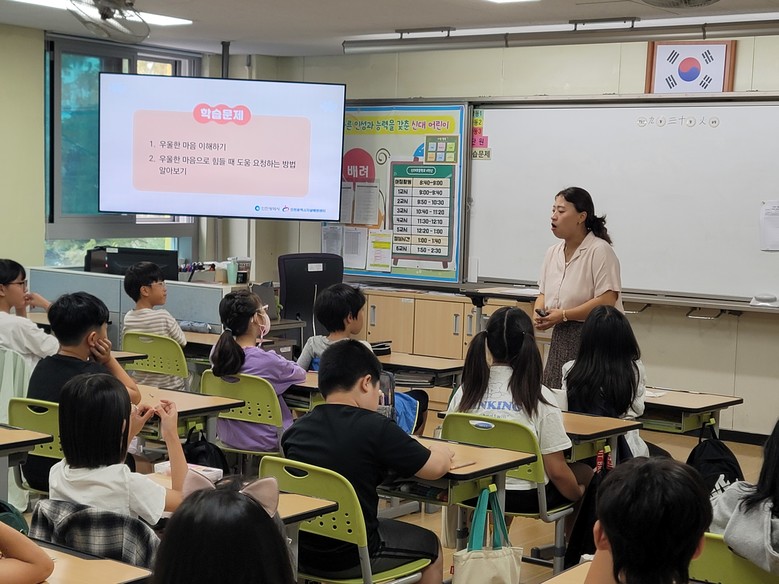 교육은 ‘마음을 봄’을 주제로, 일상 속 다양한 감정을 이해하고 우울한 마음을 다루는 법, 어려울 때 도움을 요청하는 방법 등을 배우는 내용으로 구성됐다.