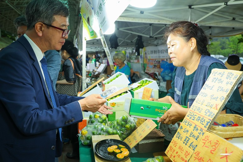 한국마사회 사회공헌재단 정기환 이사장을 비롯한 임직원들은 20일 렛츠런파크 서울에 위치한 농축산물 직거래 장터 ‘바로마켓’에서 취약계층에 지원할 물품 등을 직접 구매하며 경기침체로 힘들어하는 상인들을 응원하고 격려하는 시간을 가졌다.