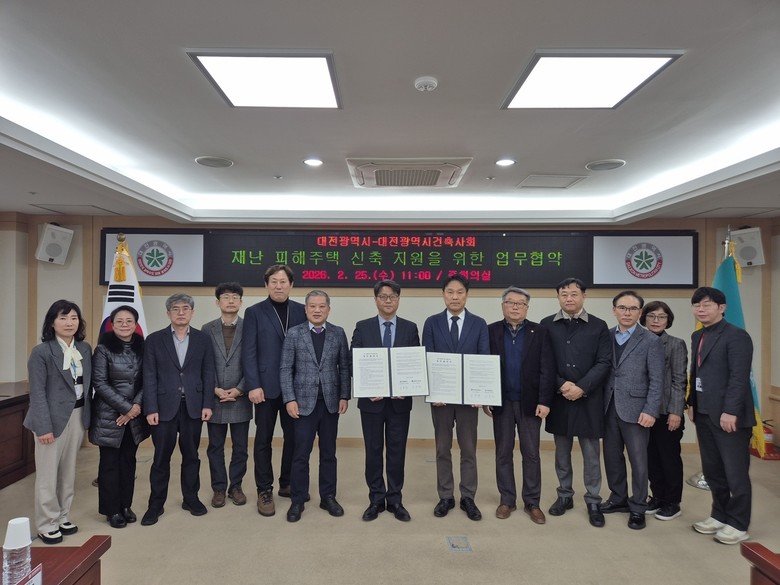 신동헌 대전시 시민안전실장은 “최근 기후변화 등으로 재난의 규모가 커지는 상황에서 지역 건축 전문가들과의 협력은 피해 주민들에게 큰 힘이 될 것”이라며 “대전건축사회와의 공고한 신뢰를 바탕으로 시민의 생명과 재산을 지키는 데 최선을 다하겠다”라고 말했다.