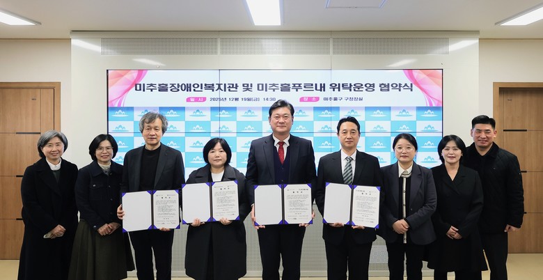 이번 협약식은 미추홀장애인복지관과 미추홀푸르내의 위탁 기간이 오는 31일에 만료됨에 따라, 공개모집 절차와 수탁자 선정심의위원회의 심사를 거쳐 위탁법인을 선정하고 위탁 운영 협약을 체결하기 위해 마련됐다.