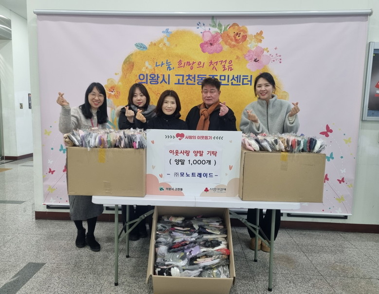 이번에 기탁된 양말은 의왕시 고천동 소재 ㈜모노트레이드에서 전달한 것으로 관내 저소득 가구와 독거노인 등 도움이 필요한 이웃들에게 배부될 예정이다.