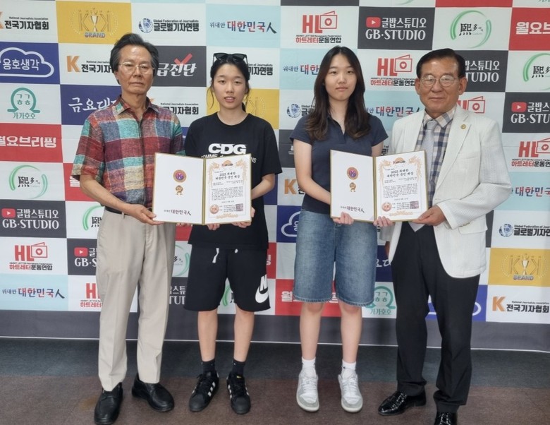 한국기독글로벌스쿨 11학년 박도영, 도연 쌍둥이 자매가 지난 16일 전국기자협회 대강당에서 개최한 2025 위대한 대한민국 국민대상 시상식 사회봉사부문에서 사회봉사최고대상을 수상했다.