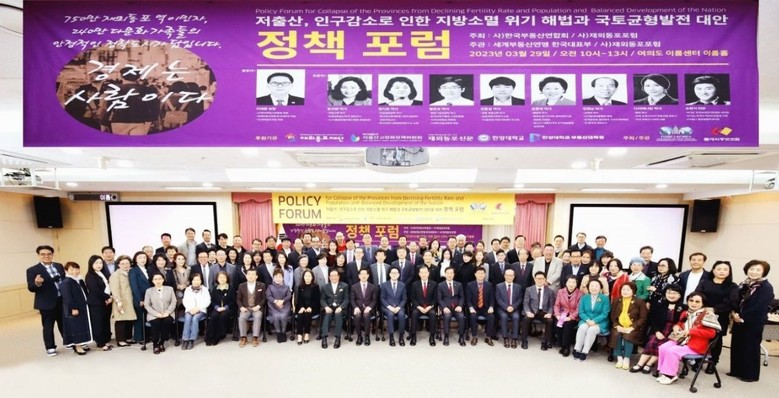 [세계타임즈 백진욱 기자] 사단법인 재외동포포럼(이사장 조롱제)과 사단법인 한국부동산연합회(회장 지태용)가 주최하고 세계부동산연맹 한국대표부가 주관한 ‘저출산·인구감소로 인한 지방소멸 위기해법과 국토균형방전대안’ 정책포럼이 지난 3월 29일 서울 여의도 이룸센터 이룸홀에서 개최됐다.