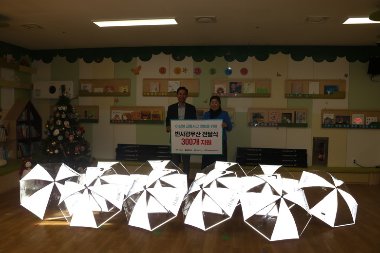 도는 한 변호사가 어린이 보행 안전을 위해 반사광 우산 300개를 추가 기부했다고 3일 밝혔다.