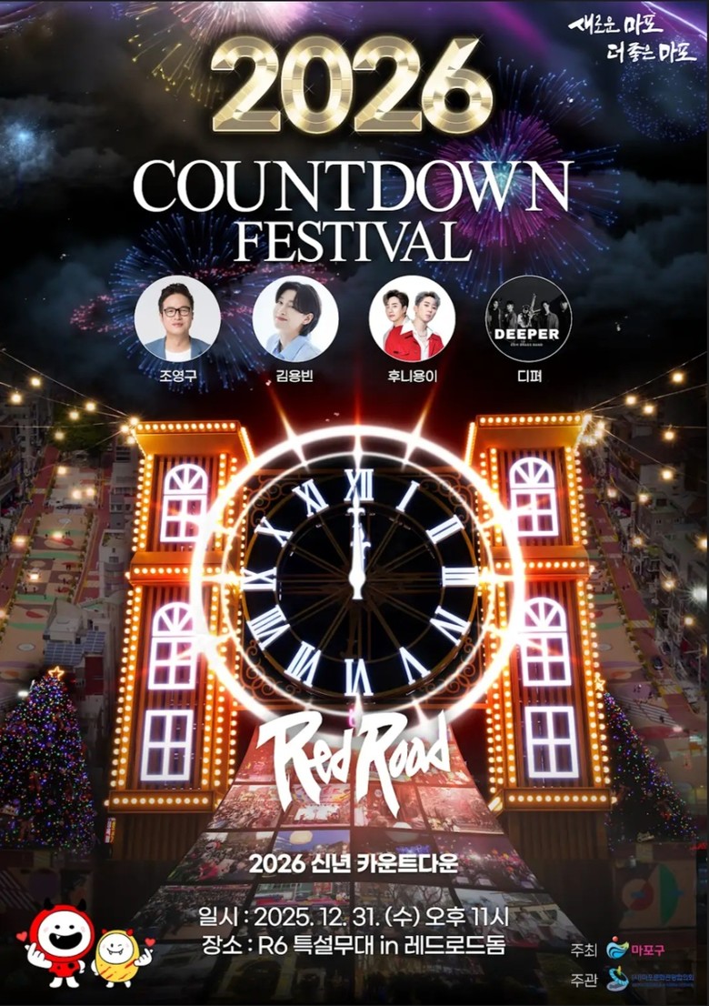 마포구(구청장 박강수)는 2025년의 마지막 밤, 새로운 한 해의 시작을 구민과 함께 맞이하기 위해 12월 31일 레드로드 R6 에어돔 일대에서 ‘2026 레드로드 카운트다운 페스티벌’을 개최한다.